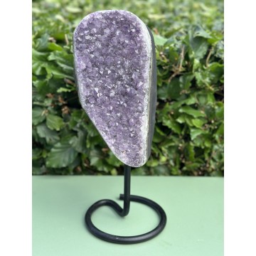 Ametysts betydning – den du ser på billedet er den du får Nøgleord: Tillid, visdom, selvtillid og klarsyn Ametyst har en rensende effekt på krop og sjæl – lægger en dæmper på alle former for stress. Ametyst giver tillid og selvtillid. Den hjælper dig til at træffe de rigtige beslutninger. Beskytter mod dårlige energier og befordrer ægteskabelig lykke. Giver klarhed både i drømme, og når der skal træffes store beslutninger. Virker afstressende og anbefales mod søvnløshed. Ordet ametyst kommer fra græsk og betyder "ikke beruset". Ametysts betydning blandt antikke grækere og romere blev brugt til at kurere beruselse. Ametyst er også blevet brugt til hjælp med søvnløshed, sorg og afhængighed. Affirmation: "Jeg har nu det rette mod til at tage vigtige og rigtige beslutninger" Chakra: Pineal – det tredje øje, samt krone Mål: H: 37 cm, b: 14 cm, d: 10 cm Vægt: 4,86 kg Vores sten og krystaller er af højeste kvalitet, da alle bliver nøje udvalgt. Men er ikke ens, så der kan forekomme forskelle i udseende, størrelse og ujævnheder.