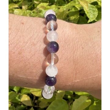 Armbånd ametyst, rosakvarts, bjergkrystal – Krystal Armbånd – GodKarmaShop