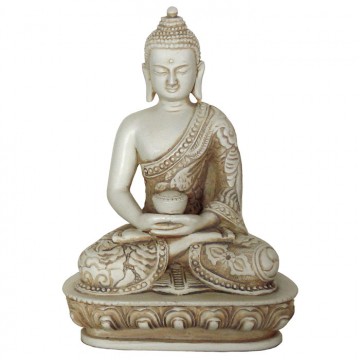 Buddha i meditation hvid sten finish – Buddha statuer generelt – GodKarmaShop