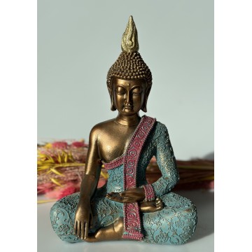 Buddha i turkis & Gold 26 cm – Buddha statuer generelt – GodKarmaShop