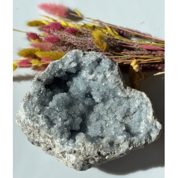 Celestit den du ser på billedet er den du får. Nøgleord: Selvudvikling, sundhed og styrke Affirmation:”Alt har en årsag og en virkning.” Energier:Denne krystal er en englesten med beroligende og dejligt opløftende energier. Den giver dig en følelse af at være beskyttet af en kærlig og stærk livskraft. Den støtter dig i at åbne op for at kanalisere med universet. Celestit skaber en kontakt til englene og universets væsner. Den udvikler din følelse af at være åndeligt styrket og vis. Energierne giver dig muligheden for at opnå en bedre sundhedstilstand og for stor selvrealisering. Den er en kosmisk læremester, som kan give dig et overflod af universets livslektioner. Den er super at anvende som fokuspunkt, når du arbejder med bøn, meditation eller mindfulness. Den healer dit sind og din fysiske krop. Chakra: Hals og krone. Numerologi: 5. Mål: H: 22 cm, B: 15,5 cm, D: 10 cm. Vægt: 4,8 kg. Vores sten og krystaller er af højeste kvalitet, da alle bliver nøje udvalgt. Men ikke ens, så der kan forekomme forskelle i udseende, størrelse og ujævnheder.