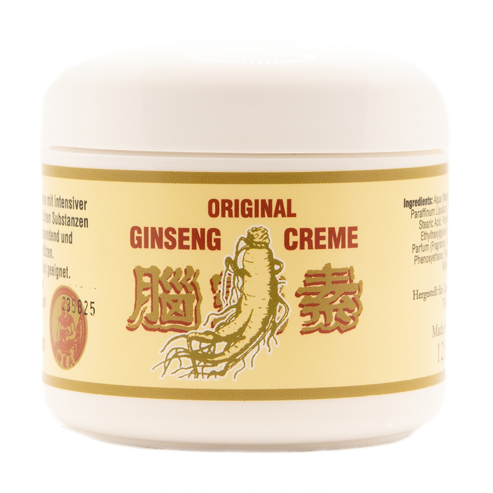 Ginseng creme 125 ml Aqua (Water), Glycerin Stearate, Ethylhexyl Stearate, Olus (Vegetable) Oil, Paraffinum Liquidum, Petrolatum, Glyceryl, Propylene Glycol, Stearic Acid, Palmitic Acid, Panax Ginseng Root Extract, Cocoglycerides, Ethylhexylglycerin, Ceteareth-20, Cetyl Palmitate, Sodium Polyacrylate, Parfum (Fragrance), Tocopherol, Lecithin, Ascorbyl Palmitate, Glyceryl Oleate, Phenoxyethanol, Potassium Sorbate, Sodium Benzoate, CI 19140, CI 15985, Sodium Chloride, Sodium Sulfate, Citric Acid.