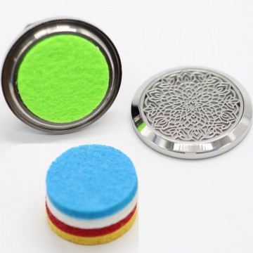 Nyd aromaterapi i din bil med denne Car Diffuser. Denne bil diffuser i rustfrit stål clipses på luftkanalen og skaber en sund og behagelig atmosfære i køretøjet. Dets rustfrit stålmateriale og dets mønster gør det muligt for den at bringe et designerpræg til dit interiør. "Mandala"-motivet bringer det originale dekorative præg. Clip'Arôme har det særlige ved at være meget let at bruge. Deres idriftsættelse er hurtig og deres vedligeholdelse nem. Dets rustfrit stålmateriale og dets mønster vil gøre det muligt for den at bringe et designerpræg til dit interiør. Der medfølger 5 filt dutter i forskellige farver, som gør det nemt at skifte æteriske olier eller dufte. Produktet: – Diffusion ved ventilation. – Brugervenlighed. – I rustfrit stål og 5 filt dutter medfølger. Funktioner : Dens låsesystem med gevind for enklet håndtering og hurtig og effektiv idriftsættelse. Hæld 1 til 3 dråber æterisk olie på filt dutten. Klip den fast på dit køretøjs luftåbning, efter et par minutter vil atmosfæren i dit køretøj være duftende. Mål: 3 x 3.6cm.