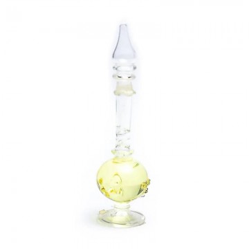Duftolie i håndblæst flaske med jasmin duftSong of India Natural Fragrant Oil er lavet med rene æteriske olier udvundet fra blomster, blade, rødder og træ. Dette er nogle af de mest langtidsholdbare dufte i verden. Deres holdbarhed er meget lang, 5-10-15 år. Med tiden bliver de mørkere, tykkere og mere behagelige i duften. Nyd den skønne duft. Dup forsigtigt på dine afslappede tøj, sengetøj eller gardiner. Sådan åbnes flasken: Dyp halsen af din kunstnerisk håndlavede flaske i lunkent vand i 30 sekunder. Drej forsigtigt for at åbne låget. Fjern forseglingen fra låget, mens det stadig er vådt. Det kræver stor omhu at håndtere og åbne denne flaske.