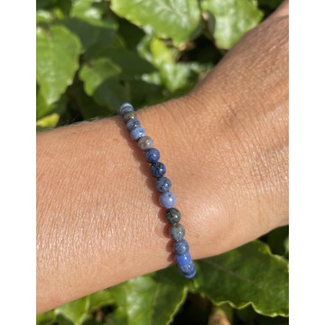 Hvis du er hurtig på aftrækkeren, vil dumortioniten hjælpe dig med at være mere tålmodig. Den kan være med til at forbedre din tale og aritmetik, ja dine kognitive evner. Den er god at have i stressede situationer og give dig hjælp til at forstå præcist, at hvad du vil udføre. Den kan harmonisere kræfterne i din halschakra, samt forbedre sammenkoblingen mellem dine nedre og øvre chakraer.Den hjælper med at være følsom over for dine himmelske og psykiske vogtere. Krystallens str.: 4 mm Armbåndet er lavet på en smykke elastik som gør det nemt at tage af og på. Armbåndet er ca. 17 til 19 cm/one-size. Chakra: Rod og hals.