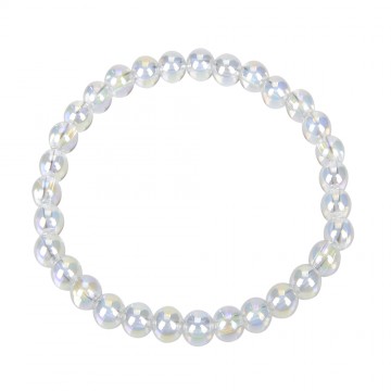 Engle aura bærer en meget kærlig energi, stimulerer ånden og hæver dit humør.Meditation med denne krystal giver en mulighed for at komme ind i en tilstand af ro og fred, rensning og hvile. Nøgleord: spiritualitet, balance og kommunikation. Energier:Engel Aura kvarts hjælper med at huske lektioner fra tidligere inkarnationer og tilslutte dig dit åndelige formål. Det er en vidunderlig hjælp til at anerkende skønhed, fra natur og ånd, indefra og i andre.Engel Aura kan bruges til at justere og rense alle chakraer. Engle Aura er en særdeles helbrende krystal, der harmoniserer dit energifelt med den fysiske krop. Engel aura krystaller siges at fremme spirituel forbindelse og åbenhed. De menes at hjælpe med at styrke forbindelsen til det guddommelige og åbne op for åndelige dimensioner.Aura krystaller bringer balance og harmoni til krop, sind og menes at have en beroligende effekt på følelsesmæssige svingninger. De kan støtte i helingsprocessen og hjælpe med at lindre stress og angst.Nogle mennesker oplever en styrkelse af deres intuitive evner og forbindelse til deres indre visdom ved at arbejde med engel aura krystaller. Affirmation: "Min forbindelse til det guddommelige er klar og ultra kærlig" Chakra: Krone og hals. Krystallens str.: 6 mm Armbåndet er lavet på en smykke elastik som gør det nemt at tage af og på. Armbåndet er ca. 16 til 18 cm/one-size.