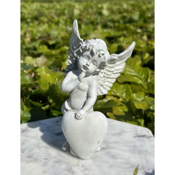 Dine engle og engle figurer kender dit hjertes ønsker, dine drømme, dine sande følelser, din frygt, dine fejl, dine styrker og svagheder. Dine engle kender den virkelige dig: som en sjæl og som et menneske. Gennem denne unikke forbindelse, sammen med energien i deres ubetingede kærlighed, kan dine engle og engle figurer forstå dig på en meget dyb og meningsfuld måde, de ved hvad du virkelig vil have, hvad der virkelig er bedst for dig og hvordan man kan guide dig til at skabe det. Denne søde hjerteengel kan også bruges som gravpynt til en af dine kære. Materiale: Polyresin Mål: H: 13 cm B: 9 cm x D: 14 cm Farve: Grå/råhvid