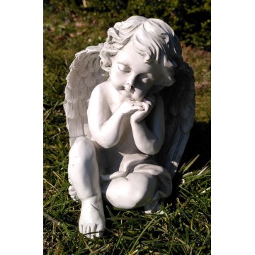 Flere teologer mener, at englene blev skabt som de første, samtidig med lyset og før menneskene. Gud skabte dem som ren ånd og uden fysisk legeme, med intelligens og vilje. Hvert menneske har en engel ved sin side som vejleder og som hyrde, der skal føre det til frelse. Det siges at du kan bede englene om hjælp til alt. Der er ingen grænser for hvad du kan spørge om. Englene kontakter dig på en måde, så du kan forstå deres budskaber. De tilpasser sig dig, hvor du er. Har du blot et åbent sind, så kan englene give dig svar, blot på en anden måde end du umiddelbart forventer det. De hører dig altid og svarer altid dine bønner. Kan også bruges som gravpynt til en af dine kære. Materiale: Polyresin Farve: patina hvid. Mål: H: 20 cm x D: 10 cm x B: 15 cm Vægt: 0,62 kg