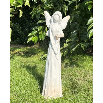 Elegant Engel med Rose – Symbolet på Kærlighed og Fred. Skab en atmosfære af ro og kærlighed med vores smukke engel, der holder en rose i hånden. Denne fortryllende figur er ikke bare en dekoration, men en dyb og meningsfuld påmindelse om håb, beskyttelse og ubetinget kærlighed. Englens fine detaljer og den elegante rose symboliserer skønhed, renhed og romantik. Hvilket gør den til en perfekt dekoration i dit hjem eller som en rørende gave til en, du holder af. Med sit yndefulde design og blide udtryk bringer englen en følelse af trøst og inspiration. Den passer perfekt på reolen, natbordet eller som en central del af din indretning, hvor den vil tilføje en varm og spirituel energi til rummet. Giv dit hjem et løft med denne smukke engel med en rose – en tidløs påmindelse om, at skønhed og håb altid er lige inden for rækkevidde. H 48 cm x B: 15 cm x D: 11,5 cm Vægt: 1,16 kg