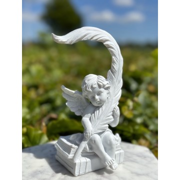 Engel siddende med fjer – Engle figurer – GodKarmaShop