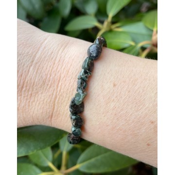 Serafinit – Englesten. "Lysets sten" Englesten " Ubetinget kærlighed " En smuk ny og sjælden sten i Serafinit med oprindelse i Rusland. Stenen med "Angels 'energy and vibration .." .. Stimulerer hjerte Chakra primært men også krone . Giver kontakt med englene. Serafinit har stor helbredelses egenskaber. Står for ubetinget kærlighed. Renser, styrker evnen til at tale. Hvis du arbejder på at hæve din energi og din "opstigningsproces" under meditation i dit åndelige arbejde, er denne smukke sten super god. Nøgleord: Beroliger, stimulation, fred, ro. Skaber en stærk forbindelse til værgeengle. Øger og stimulere sanserne til at kunne modtage synske visioner og styrke de clairvoyante evner. Krystallens str.: 5 – 7 mm. Armbåndet er lavet på en smykke elastik som gør det nemt at tage af og på. Armbåndet er ca. 16 til 19 cm/one-size.
