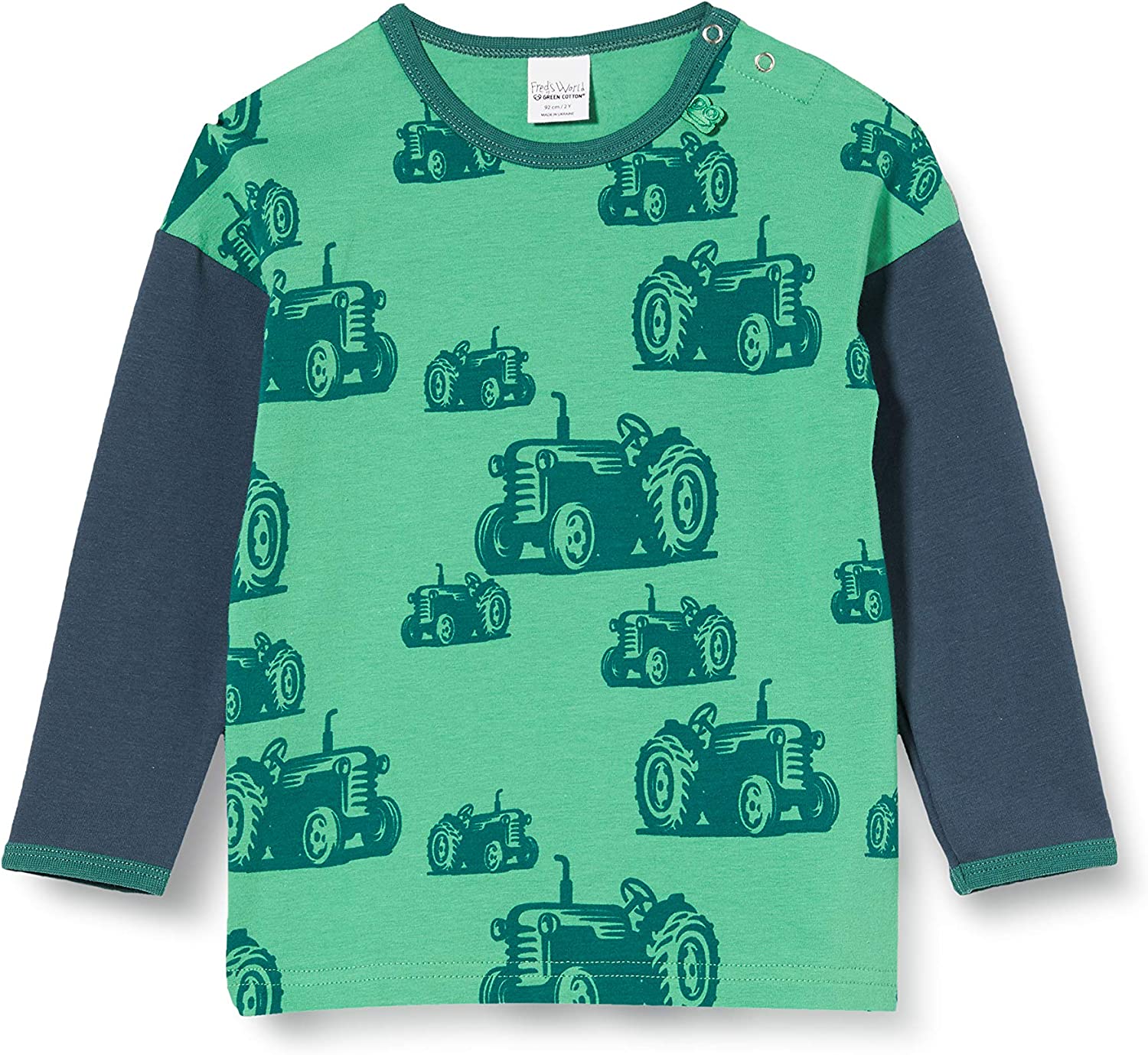 Sød langærmet bluse til de mindste, med fine traktor motiver. Praktisk knaplukning ved halsåbningen. Farve : Green. Fremstillet i 95% bomuld, 5% elastan.