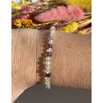 Regnbuefluorit er en variation af fluorit, en krystallinsk mineral bestående af calciumfluorid. Det, der gør regnbuefluorit særlig, er dens farverige og ofte transparente natur. Den kan have forskellige farver, herunder lilla, grøn, blå, gul, lyserød og andre nuancer. De forskellige farver kan også forekomme i samme krystal, hvilket giver et regnbuelignende udseende, deraf navnet "regnbuefluorit". Nøgleord: Harmoni, balance og healing. Energier:Regnbuefluorit virker harmoniserende og balancerende på krop og sind. Den styrker spiritualiteten og knyttes til åndelig udvikling samtidig med at den booster både hjerteenergi og healing. Den styrker selvtilliden og er en "vækst krystal" – da den virker som en kraftfuld kanal fra jordens indre livskraft, den er således også ideel til meditation. Regnbuefluorit inspirerer til nye ideer, originalitet og hurtig tænkning ogl leder også tankerne hen på magi og "enhjørninge vibrationer" samt en "If you can dream it, you can do it" energi! Affirmation: "Alt er muligt i min verden" Chakra: Hjerte og krone Armbåndet er på en smykke elastik som gør det nemt at tage af og på. Armbåndet er ca. 16 til 18 cm/one-size. Krystallernes str.: Ca. 0,4 mm. Vores sten og krystaller er af højeste kvalitet, da alle bliver nøje udvalgt. Men ikke ens, så der kan forekomme forskelle i udseende, størrelse og ujævnheder