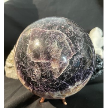 Fluorit Lilla kugle. Nøgleord: Viden, forsikring, stabilitet. Chakra: Pineal (det tredje øje). Krone, hvilket bringer visdom og magt. Affirmation: "Jeg har tillid til min indre visdom" Lilla Fluorit stimulerer dit tredje øje, øger evnen til koncentration og skaber indre fred, balance samt følelssesmæssig stabilitet. Øger evnen til at bruge intuitionen og er glimrende til at støtte den indre balance. Giver en stabil energi, og hjælper dig til at stole på din intuition og gå efter det som er bedst for DIG i DIT liv. Mål: 11,5 cm Vægt: 2,443 kg