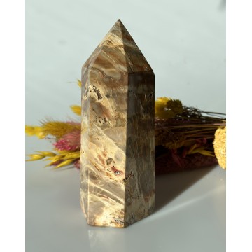 Forstenet træ Nøgleord:Ro, transformation og bevidsthed Affirmation:”Mit, jeg er min styrke" Energier: Forstenet træ er en helt fantastisk sten som støtter dig med at slippe frygt, angst og panik. Den arbejder med dine forfædres energi som en hjælpe energi.Ligesom hvis du går en tur i skoven, beroliger forstenet træ dig og giver dig følelsen af sikkerhed og velvære i krop og sind. Den er genial som meditations ven, og den guider dig til at se det gode og positive i alt i livet. Du bliver med denne fantastiske sten vejledt og skubbet til at finde din rette vej i dit liv. Den viser dig løsningsmuligheder på de udfordringer som dukker op i dit liv.Den giver dig styrke og tålmodighed, da dette kan være store udfordringer i rigtig mange menneskers liv, når de ønsker at arbejde med en indre transformation. Der opnås "At blive den man ønsker at være."Forstenet træ opmuntrer dig til at sætte og fastholde et tempo i dit liv – på vejen mod dit næste mål. Chakra: Rod. Numerologi: 1 og 4. Mål: H: 15 cm, B: 6 cm, D: 5 cm. Vægt: 750 g. Vores sten og krystaller er af højeste kvalitet, da alle bliver nøje udvalgt. Men ikke ens, så der kan forekomme forskelle i udseende, størrelse og ujævnheder.