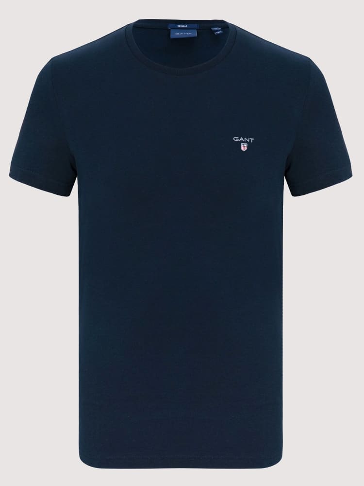 Stilfuld klassisk Regular T-Shirt fra Gant. Med rund hals og det velkendte logo broderet på brystet. Farve: Navy. Fremstillet i 100% bomuld.