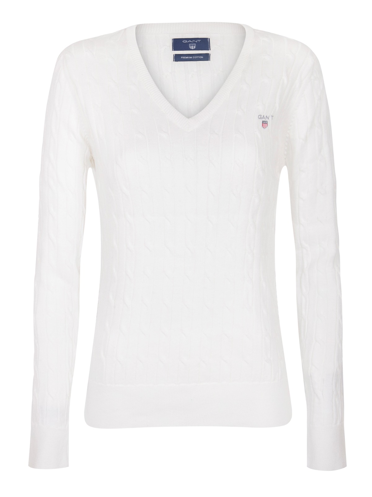 Super lækker Stretch Cotton Cable V-Neck sweater i White fra Gant.