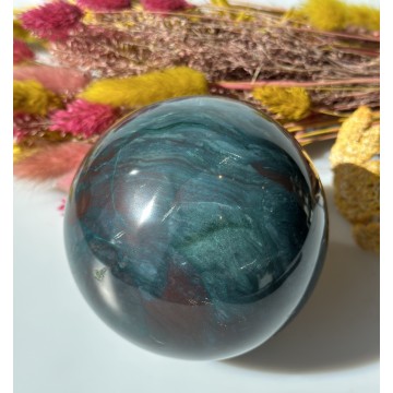 Grøn jaspis kugle den du ser på billedet er den du får. Grøn jaspis giver udholdenhed, styrke og kraft til at udføre ideer og projekter til perfektion. Den hjælper dig til at kunne være i dit eget selskab. Grøn jaspis healer og løsner sygdomme. Den afbalancerer de dele af dit liv, som er vigtige for dig. Jaspis generelt er kendt som "den suveræn bedste næringskrystal". Den bærer og støtter i tider med stress og bringer ro og helhed. Når man bruger den til healing, forener den alle aspekter af dit liv. Jaspis minder mennesker om at hjælpe hinanden. Affirmation: "Handlinger taler højere end ord" Chakra: Hjerte Str.: Diameter: 9 – 10 cm Vægt: 1030 – 1270 g. Prisen er pr. stk. Vores sten og krystaller er af højeste kvalitet, da alle bliver nøje udvalgt. Men er ikke ens, så der kan forekomme forskelle i udseende, størrelse og ujævnheder.