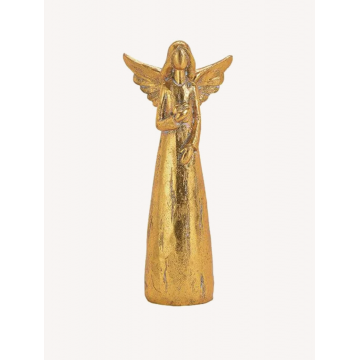Mål B: 10 x H: 24 x D: 7 cm Materiale: Polyresin Farve: Guld Lidt om engle: Flere teologer mener, at englene blev skabt som de første, samtidig med lyset og før menneskene. De er skabt som ren ånd med meget stor intelligens og styrke. Gud skabte dem som ren ånd og uden fysisk legeme, med intelligens og vilje. Hvert menneske har en engel ved sin side som vejleder og som hyrde, der skal føre det til frelse. Det siges at du kan bede englene om hjælp til alt. Der er ingen grænser for hvad du kan spørge om. Englene kontakter dig på en måde, så du kan forstå deres budskaber. De tilpasser sig dig, hvor du er. Har du blot et åbent sind, så kan englene give dig svar, blot på en anden måde end du umiddelbart forventer det. De hører dig altid og svarer altid dine bønner. I vores tid, begynder vi at søge efter den åndelige virkelighed. Vi begynder at indse, at vi ved at ignorere den åndelige dimension er i gang med at ødelægge både os selv som mennesker og vores klode.
