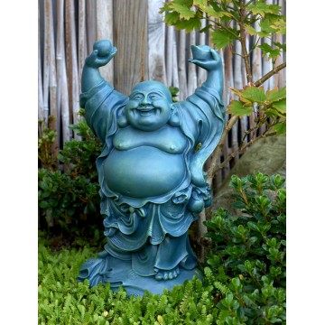 Flot stående glad Buddha statue – Hotei. Størrelse er 39 cm høj, den er super flot. Skab glæde inde samt ude med denne flotte og glade Hotei.