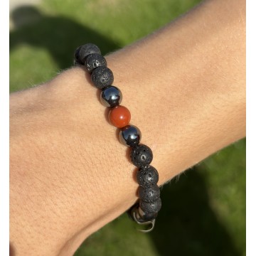 Herre armbånd med lava, hæmatit og rød jaspis – Krystal armbånd til mænd – GodKarmaShop