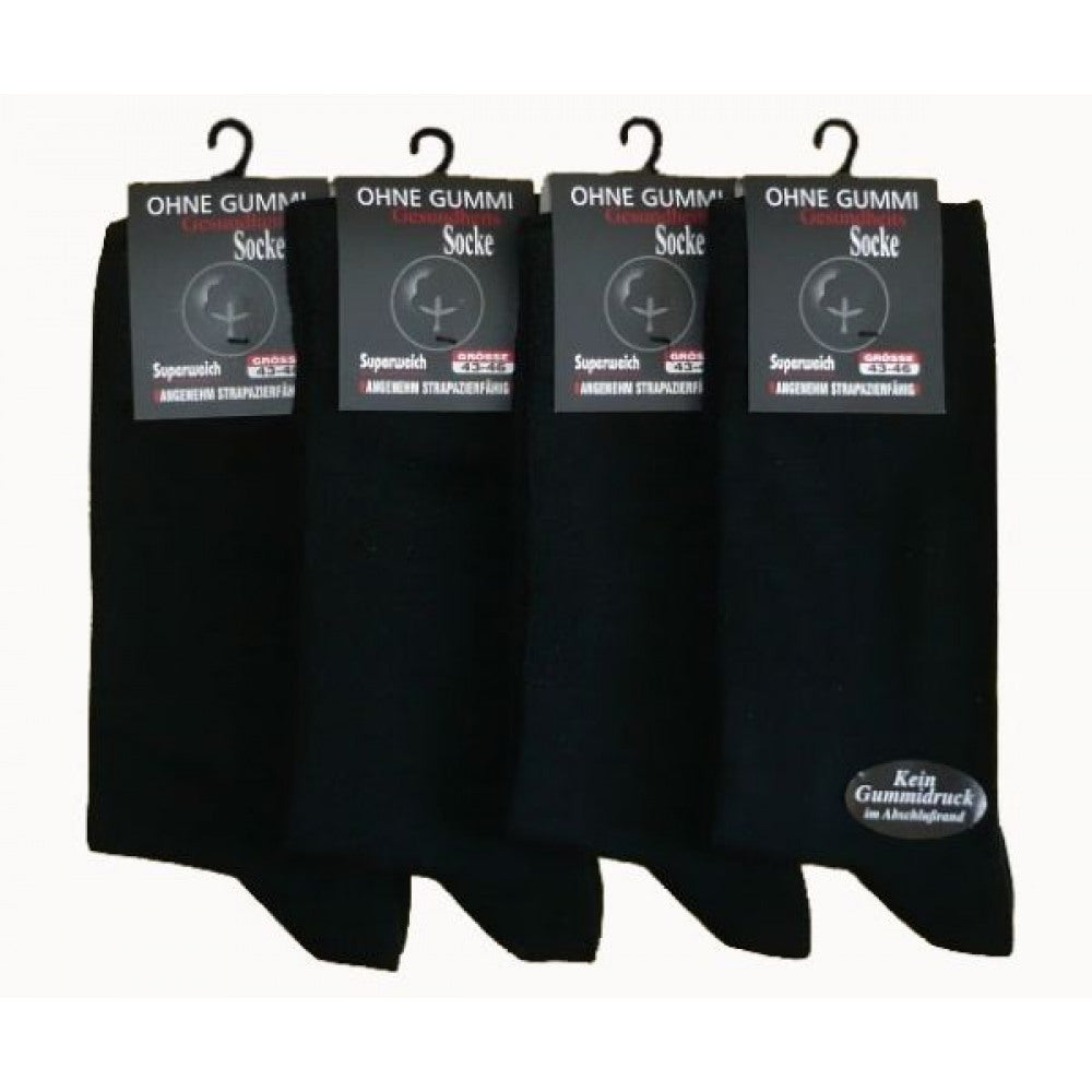 sorte herre sundheds strømper uden elastisk i linning. Diskret såmærket COMFORT-bogstaver. Materiale sammensætning: 80% bomuld, 15% polyamid, 5% spandex. Størelser 39-42 og 43-46