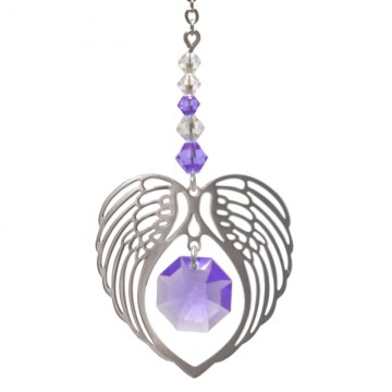 Juni Hjerte. Dette hjerte repræsentere: Spiritualitet, klarhed, ro. Håndlavet i England, vores Birthstone Angel Wing Heart-solfanger i light ametyst, er den perfekte gave til en fødselsdag i juni. Et spejlfinish metalvingehjertemotiv fremhæves med fødselstenskrystaller og omfatter en Swarovski ottekantet krystal. Hver solfanger leveres med en forklaring på dets farvebetydning ( På engelsk ). Mål Hjerte: 3,5 x 4 cm Mål længde ca. da de tit laver det om da de er håndlavede: 16,5 cm Materiale: Krystal og metal.