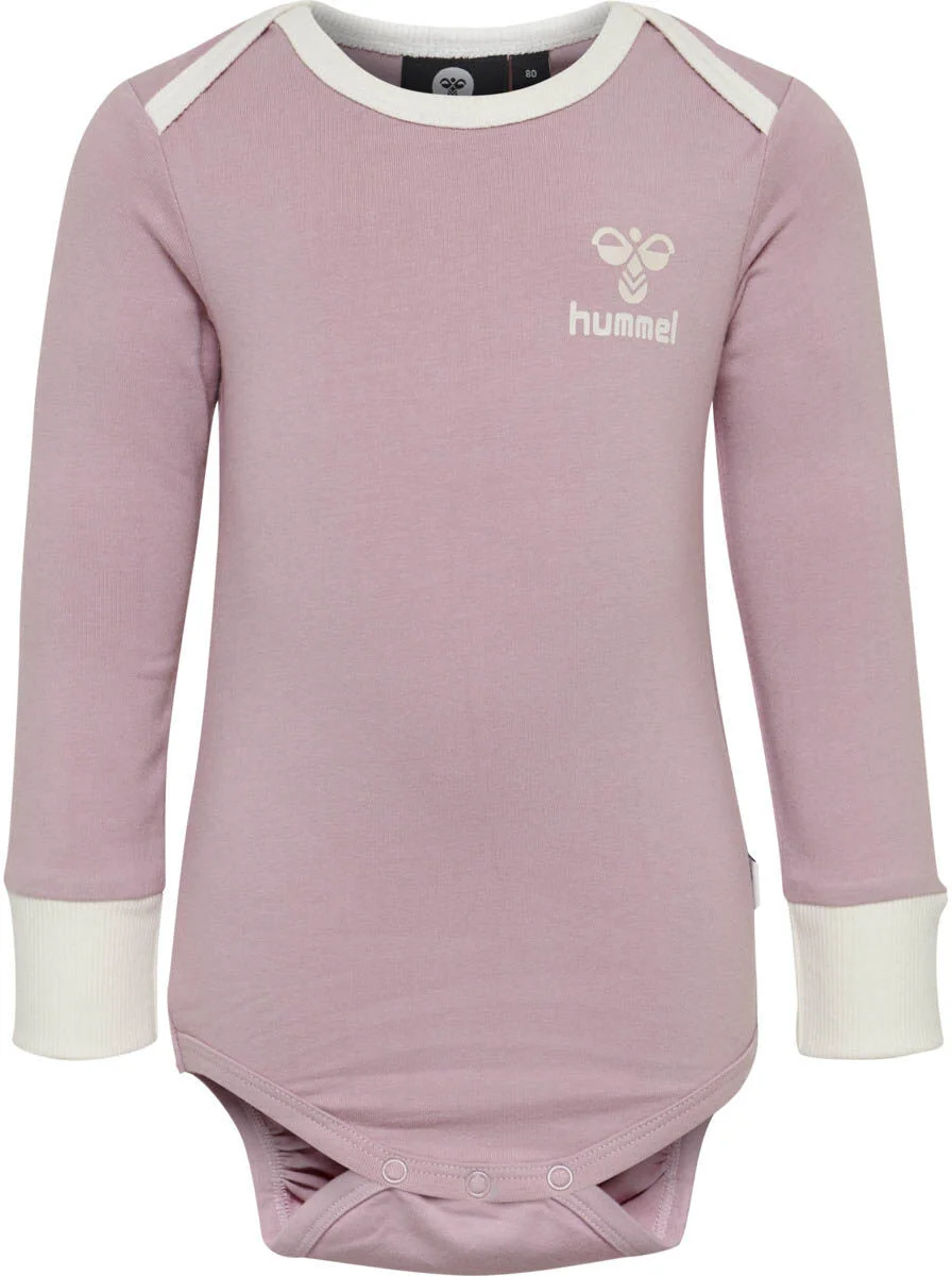 Smart og klassisk Hummel body med lange ærmer. I lækkert elastisk jerseystof og med trykknapåbning forneden. Kontrastkanter ved hals og ærmekanter. Farve : Mauve Shadow. Fremstillet i 95% bomuld, 5% elastan.