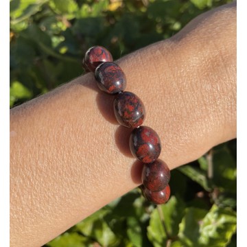 Den hjælper dig med at nå dine mål og gøre ideer til handling. Den gør dig kamplysten, beslutsom, vedholdende og hjælper dig med at gå efter noget fuldt ud. Jaspis hjælper dig også med at stå op for dig selv og giver mod, gør dig modstandsdygtig og selvsikker og reducerer frygt for konflikter. Den gør dig oprigtigt, ærligt hjælpsom og giver balance i krop, sjæl og ånd. Stenen fremmer også organisatoriske færdigheder, hurtig tænkning og stimulere fantasien. Jaspis absorberer negativ energi og beskytter på denne måde mod stråling, negative påvirkninger og miljøforurening. Chakra: Rod. Armbåndet er lavet på en smykke elastik som gør det nemt at tage af og på. Armbåndet er ca. 16 til 18 cm/one-size. Krystallens størrelse: 12 mm.