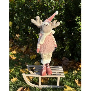 Denne søde han har en veninde hun elg, som du kan finde lige her. De er så fine – også i par. Matariale: Stof Mål: H: 68 cm B: 24 cm D: 20 cm Farve: Rosa, hvid og beige BEMÆRK prisen er uden kælk, den fås her: og en Elg
