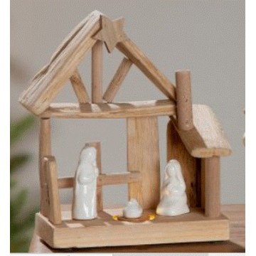 Krybbespil er med den hellige familie i stalden julenat i Betlehem. Frans af Assisi (den katolske helgen) regnes af mange for at være den første som lavede en julekrybbe, dog er det langt fra sikkert, da tegninger fra før hans tid, viser billeder af julekrybber Julekrybbe benyttes både af den kristne verden, men også af andre. Materiale: Porcelæn og træ. Ca. mål: Højde: 25 cm, bredde: 19 cm, dybde: 10 cm.(Ca. mål: da de er håndlavede) Vægt: ca. 400 g.