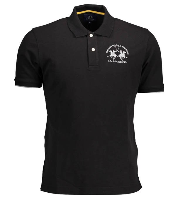 Sporty polo fra La Martina i lækker kvalitet. Denne polo har en almindelig pasform, knappelukning i halsen og ribkant i ærmer og krave. Et stort broderet logo på brystet bryder med den sorte grundfarve. Fremstillet i 100% bomuld.