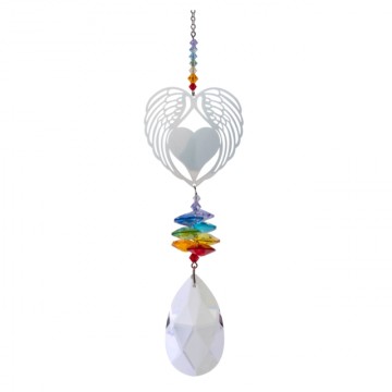 Large Swarovski Krystal Regnbue Vinger med hjerte Skab Feng Shui med denne smukke Woodstock krystal i hjemmet, på kontoret eller hvor du har brug for gode energier. Mål: ca 27 cm lang med kæde. Med 38 mm mandel-formet Swarovski krystal. Håndlavet i England.