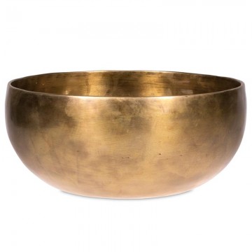 Stor Tibetansk syngeskål med flower of Life symbol graveret i bunden. 900-1050 gram. Diameter ca. 20 cm. Bemærk at pude samt slagtøj ikke indgår og at det skal købes seperat. Se tilbehør. En klassisk, hånd hamret syngende skål, med sin egen unikke lyd. Består af 7 (Nobel) metaller, blandt andet: Kobber, tin, zink, jern, bly, guld og sølv.De procentdele af de 7 metaller, diameter og tykkelsen af de forskellige typer syngende skåle skaber deres egen unikke lyd og overtoner fra hver syngeskål. Detaljeret produktbeskrivelse.Hver syngeskål er omhyggeligt hamret i hånden, hvilket kræver flere trin. I første omgang, de forskellige sammensætninger af rå metaller til forberedelse, smeltes i en ovn. Det varme smeltede metal fjernes fra ovnen og hældes i forskellige størrelser kopper og terning figurer. Efterfølgende bliver disse metalforme rullet ud i cirkulære metal ark af den ønskede størrelse og tykkelse. Arkene bliver derefter hamret i henhold til præcise specifikationer for måling og kategoriseres efter vægt og størrelse. 4 til 5 metalplader stables og derefter opvarmet ved meget høj temperatur. De rødglødende metalplader bliver dernæst hamret af en gruppe af dygtige håndværkere, indtil varmen i metallet køler. Denne proces gentages flere gange for at danne den ønskede størrelse og form af hver syngeskål. (Dette er årsagen til udsvingene i størrelse og hånd hamret syngende skåle). Endelig bliver de individuelle syngeskåle graveret og de indre og ydre overflader poleret. Skålene anvendes som støtte til meditation eller afslapning, og kan anvendes til at rense energierne i et rum. Et lille »pling« i starten og i slutningen af en meditation klarer energierne, forfrisker og nulstiller på forunderlig vis tankerne for et øjeblik.