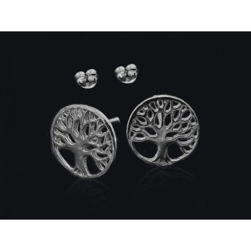 Øreringe med symbolet livets træ (The tree of life) 925 sterling sølv. Ø: 10 mm Materiale: sterling sølv 925. Hvad repræsenterer livets træ? Har du nogensinde spekuleret på betydningen bag livets træ smykker og hvad det betyder for de mennesker, der bærer det? Livets symbolisme har en lang historie, der krydser mange kulturer. Mens det ville være overvældende at forklare dets betydning for hver kultur, har livets træ overordnet temaer og betydninger, der spænder over mange mennesker Et symbol på forbindelse til alle ting. Træet har rødder, der når dybt ind i jorden, anerkender dets forbindelse til og accepterer næring fra moder jord. Blade og grene strækker sig ud i himlen og anerkender fader sol og accepterer den energi, den forvandler til næring. Livets træ betyder, at du ikke er en ø, men er dybt forbundet med verden omkring dig og afhænger af den for din evne til at vokse og trives. Et symbol på familie og forbindelse til dine forædre. Et træ symboliserer generationerne af din familie: en træspirer fra et frø, vokser og grene ud, ser hver langt det kan gå, og skaber derefter en ny frugt, der giver livet til næste generation, for at begynde på ny. Livets træ symboliserer også familien gennem sit indviklede netværk af grene, der viser vores kontinuitet gennem alle generationer. Vi er forbundet gennem stadigt voksendegrene til vores forældre og bedsteforældre og til vores børn og vores børns børn. Som et symbol på din vækst i en smuk og unik person. Når træer er unge, ser de stort set alle sammen ens ud. Men efterhånden som de bliver ældre, tåler de storm og bliver ramt af vind og vandkræfter. Deres grene kan bryde og vokse tilbage i en anden retning, eller selve jorden under dem vil forsvinde under dem, hvilket får dem til at vokse endnu stærkere for at få noget rødderne kan holde fast på. Over tid bliver de meget unikke og smukke i deres excentricitet og idiosyncrasies. De er ligesom vi alle ønsker at blive formet til facinerende, spændende individer, der har forvitret trængsler og brede erfaringer i livet, der har gjort os til,hvem vi er. Som et symbol på genfødsel. Om efteråret mister træerne deres blade og går i en dødslignende dvale i et par måneder. Men om foråret kommer der små knopper der sprænger frem med dramatiske blomster og blade og bliver født igen. På denne måde er livets træ et symbol på en frisk start på livet, positiv energi, godt helbred og en lys fremtid. Som et symbol på udødelighed. Et træ bliver gammelt, men det bærer frø, der indeholder dets meget essens, og på denne måde bliver træet udødeligt. Som et symbol på vækst og styrke. Et ungt træ starter med overfladiske rødder, som styrker og vokser dybere over tid. Brancher starter som små knopper og strækker sig opad og når til sol og himmel. Ligesom dette træ vokser over tid og stræber efter større viden og nye oplevelser.