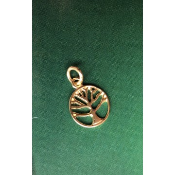 Et lille vedhæng med symbolet livets træ (The tree of life) forgyldt. Mål: 12 mm. Bemærk kæde følger ikke med. Materiale: forgyldt sølv 925. Hvad repræsenterer livets træ? Har du nogensinde spekuleret på betydningen bag livets træ smykker og hvad det betyder for de mennesker, der bærer det? Livets symbolisme har en lang historie, der krydser mange kulturer. Mens det ville være overvældende at forklare dets betydning for hver kultur, Har livets træ overordnet temaer og betydninger, der spænder over mange mennesker Et symbol på forbindelse til alle ting. Træet har rødder, der når dybt ind i jorden, anerkender dets forbindelse til og accepterer næring fra moder jord. Blade og grene strækker sig ud i himlen og anerkender fader sol og accepterer den energi, den forvandler til næring. Livets træ betyder, at du ikke er en ø, men er dybt forbundet med verden omkring dig og afhænger af den for din evne til at vokse og trives. Et symbol på familie og forbindelse til dine forædre. Et træ symboliserer generationerne af din familie: en træspirer fra et frø, vokser og grene ud, ser hver langt det kan gå, og skaber derefter en ny frugt, der giver livet til næste generation, for at begynde på ny. Livets træ symboliserer også familien gennem sit indviklede netværk af grene, der viser vores kontinuitet gennem alle generationer. Vi er forbundet gennem stadigt voksendegrene til vores forældre og bedsteforældre og til vores børn og vores børns børn. Som et symbol på din vækst i en smuk og unik person. Når træer er unge, ser de stort set alle sammen ens ud. Men efterhånden som de bliver ældre, tåler de storm og bliver ramt af vind og vandkræfter. Deres grene kan bryde og vokse tilbage i en anden retning, eller selve jorden under dem vil forsvinde under dem, hvilket får dem til at vokse endnu stærkere for at få noget rødderne kan holde fast på. Over tid bliver de meget unikke og smukke i deres excentricitet og idiosyncrasies. De er ligesom vi alle ønsker at blive formet til facinerende, spændende individer, der har forvitret trængsler og brede erfaringer i livet, der har gjort os til,hvem vi er. Som et symbol på genfødsel. Om efteråret mister træerne deres blade og går i en dødslignende dvale i et par måneder. Men om foråret kommer der små knopper der sprænger frem med dramatiske blomster og blade og bliver født igen. På denne måde er livets træ et symbol på en frisk start på livet, positiv energi, godt helbred og en lys fremtid. Som et symbol på udødelighed. Et træ bliver gammelt, men det bærer frø, der indeholder dets meget essens, og på denne måde bliver træet udødeligt. Som et symbol på vækst og styrke. Et ungt træ starter med overfladiske rødder, som styrker og vokser dybere over tid. Brancher starter som små knopper og strækker sig opad og når til sol og himmel. Ligesom dette træ vokser over tid og stræber efter større viden og nye oplevelser.