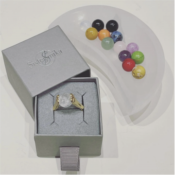 Magic Heart Ring med 13 sten – Guld – Forkæl dig selv eller en du holder af med denne unikke Ring. (stemplet #ROSE) Den er virkelig smuk, rustik og eksklusiv på en og samme tid. Den er meningsfuld idet du kan bruge krystallerne og ædelstenen efter farve, hjertevalg eller dit humør. Leveres med 13 håndslebne krystaller/ædelsten. Ringen sendes i en æske med beskrivelse på krystallerne. Krone: Opalit Pande: Lilla agat Hals: Midnatsten, Angalit. Hjerte Chakra: Rosenkvarts, aventurin, Afrikans turkis. Solar plexus: Lemmon jade. Hara: Tigerøje. Rod: Sort onyx, Rød jade. Har du svært ved at vælge størrelse, så kan du tage et stykke sytråd og måle rund om din finger. Stræk det ud og mål, står der herefter 5,4 cm så skal du vælge 54 osv. Dette sæt er med 13 maskin slebet sten og krystaller. Dvs at de er slebet på en streng hvilket betyder at de har en lille hul som en perle. Dette hul kan du gemme i skålen som holder stenen. Ønsker du sten og krystaller uden dette hul til ringen kan du vælge at tilkøbe håndslebet sten og krystaller. Du kan også vælge at købe en af æskerne med 3 håndslebet krystaller disse har ingen hul. Materiale: dobbelt 14 kat. forgyldt Massiv 925 sterling sølv. Stemplet: ROSE ædelmetal kontrollens kvalitets stempel. Størrelsesguide: Ringen kan købes i størrelse 50, 52, 54, 56, 58, 60, 62.