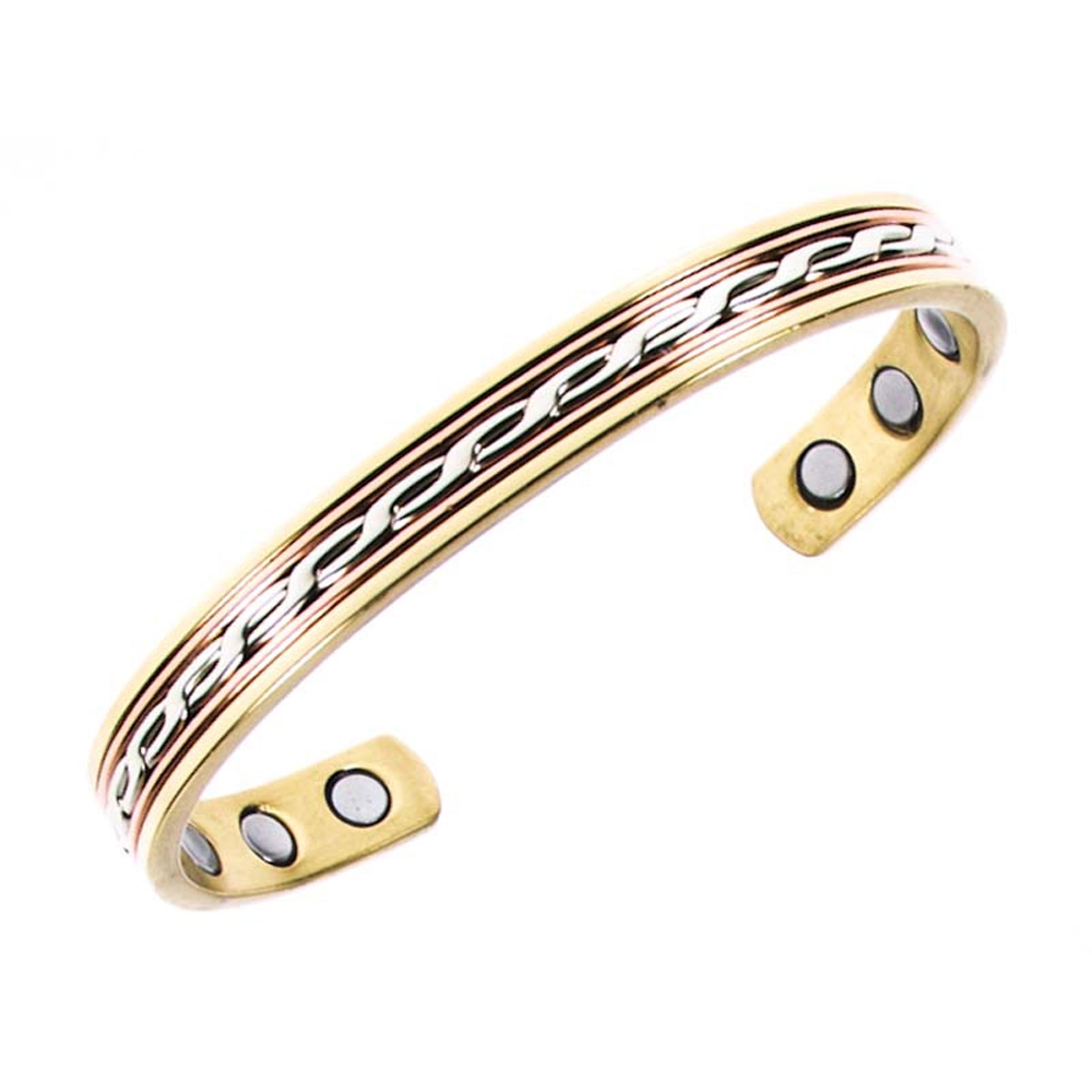 Magnet armring i kobber En magnet armring lavet af kobber har både de gode virkninger fra magneterne og kobberen. Kobber er et vigtigt grundstof, der bruges af de røde blodceller til at transportere ilten. Kobberen er også vigtig til produktion af collage, som har stor betydning for vores knogler, brusk, hud, hår og opretholdelsen af kroppens immunforsvar. Mennesker, som lider af leddegigt fortæller, at kobber magnetarmbånd kan mindske smerte og betændelse, fordi spor af mineralet trænger ind og lindre.