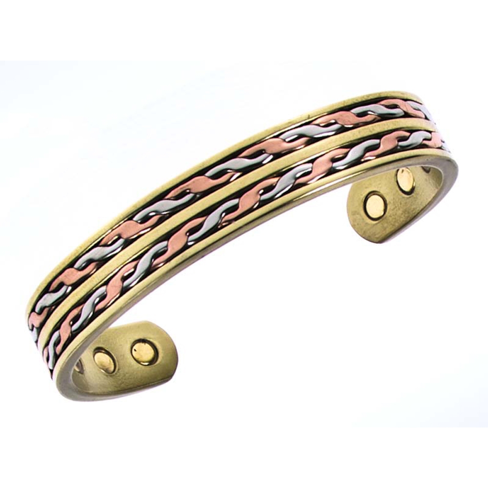 Magnet armring i kobber En magnet armring lavet af kobber har både de gode virkninger fra magneterne og kobberen. Kobber er et vigtigt grundstof, der bruges af de røde blodceller til at transportere ilten. Kobberen er også vigtig til produktion af collage, som har stor betydning for vores knogler, brusk, hud, hår og opretholdelsen af kroppens immunforsvar. Mennesker, som lider af leddegigt fortæller, at kobber magnetarmbånd kan mindske smerte og betændelse, fordi spor af mineralet trænger ind og lindre.