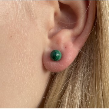 Malakits betydning: Transformationssten. Nøgleord: Opmærksomhed og transformation. Hjælper med at håndtere de mange ændringer der kan ske i livet. Åbner for verdens skønhed Forløser indestængte følelser, som sorg, angst, jalousi, afmagt, vrede og spændinger. Løser op for længsel og glæde. Styrker selvværd. Stimulering af livskraft i din aura og fysiske krop, Sunde nærende kærlighedsrelationer. Stærk forbindelse til naturens skønhed og kraft fra blomster, træer og rødder. Styrker hjertechakraet. Øjenåbner for skønheden i og omkring os. Afhjælper seksuelle blokeringer skabt af tidligere traumatiske erfaringer. Viser dine blokeringer i din spirituelle vækst. Prisen er for et par. Chakra: Hjerte. Materiale: Malakit og 925 sterling sølv Malakit perlerne er 6 mm.
