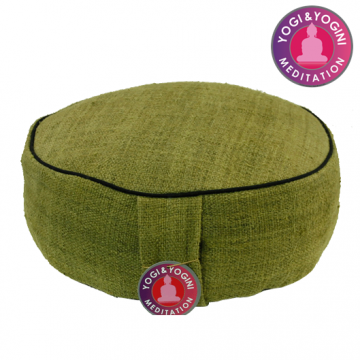 Meditationspude med naturlig hamp i grøn. Naturlig hamp er en alternativ naturligt fiber, der er dyrket med lav indvirkning på miljøet. Det kræver ingen vanding, bruger ingen pesticider eller kunstgødning og er høstet og forarbejdet i hånden. Det er en af de mest holdbare naturlige fibre på planeten og resulterer i et stof der kan sammenlignes med linned. Dyrkning af hamp forbedre jordens sundhed, og landmændene kan plante afgrøder i samme område umiddelbart efter en hamp høst uden en brak periode. På denne måde kan landmændene dyrke salgsafgrøder og fødevareafgrøder på samme areal. Hamp dyrkes økologisk ved hjælp af alle naturlige ingredienser: kompost, husdyrsgødning og tilgængelig nedbør. Meditationspuden er med lynlås, som gør at betrækket nemt kan tages af og vaskes i koldt vand. Hæng den til tørre. Må ikke vrides. Den indvendige pude kan bindes op, så man kan fylde flere boghvedeskaller i, hvis puden skal gøres højere. Du kan selvfølgelig også tage nogle ud, hvis der skulle blive brug for det. Materiale: Udvendig pude: 100% naturlig hamp fra Himalaya. Indvendig pude: 100% Bomuld Diameter: 33 cm, højde: 12 cm, vægt: 2,3 kg Ønskes der flere boghvedeskaller for at gøre puden højere kan de bestilles på GodKarmaShop.dk.