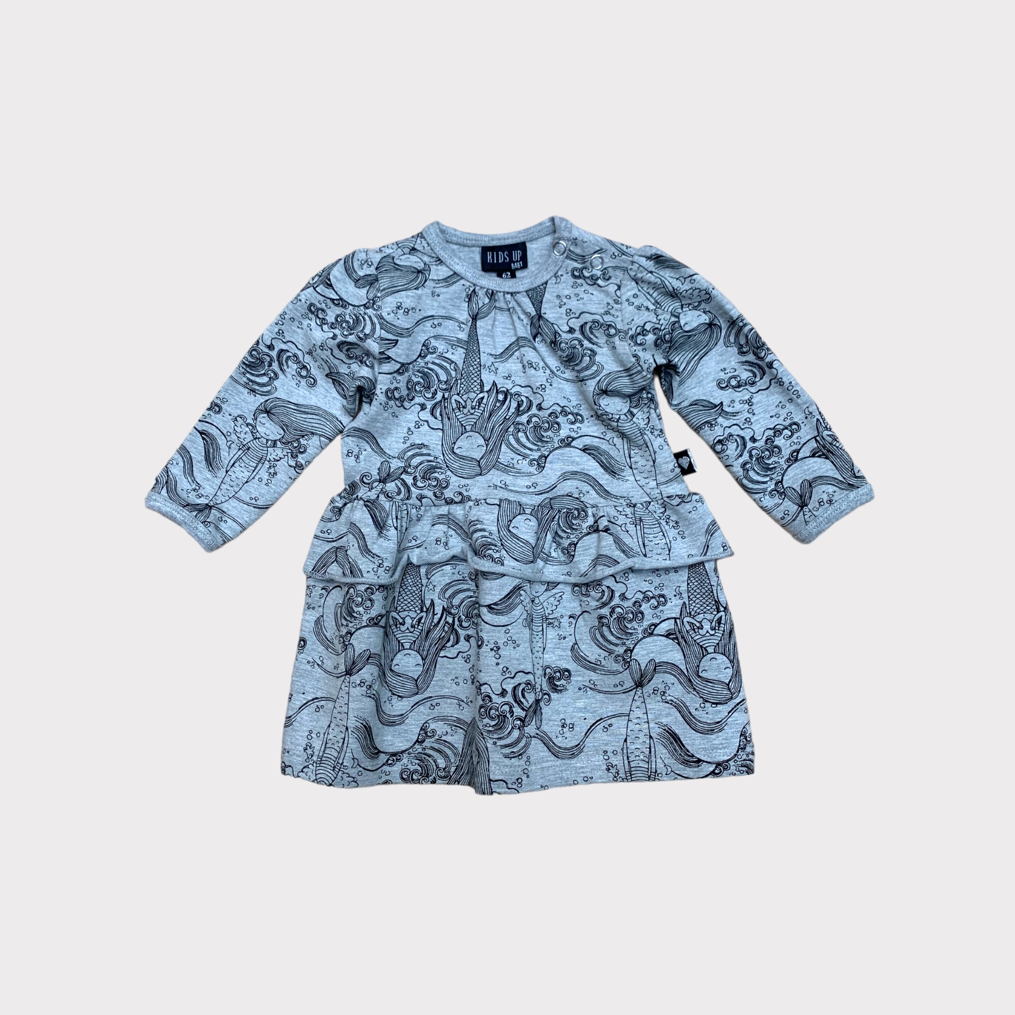 Sød baby kjole fra Kids Up i lækker blød kvalitet. Med praktisk knapluk ved halsåbning. Farve : Grey. Fremstillet i 94% bomuld, 6% elastan.