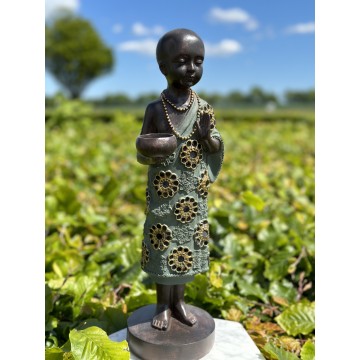 Munke dedikerer deres liv til det åndelige og forbinder sig dagligt via meditationer til en højere energi. I Asien bliver de hædret fordi de hæver landets åndelige energi og plejer deres medmennesker på en åndelig måde. På grund af deres immaterielle sans for livet tager samfundet omsorg for deres fysiske velvære på en hengiven og ydmyg måde. De betaler også for deres transportomkostninger, hvis munkene vil besøge andre templer. Vores kærlige Munke minder dig om, at der er meget mere i vores verden, og de sender ro, mildhed og visdom. Mål: H: 42.5 x B: 14 x D: 12 cm. Materiale: Polyresin Farve: Mørkebrun, petrolium og guld.
