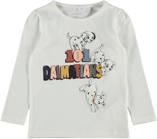 Fin langærmet trøje fra Name it. Med 101 Dalmatians motiv på brystet. Farve : Snow White. Fremstillet i 95% bomuld, 5% elastan.