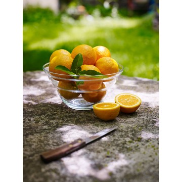 Cotula skål fra Natures Design En særdelses robust og elegant mundblæst glasskål formet med cascading sektioner i henhold til det gyldne snit, med Livets Blomst-symbol poleret på undersiden.Dejlig til servering af eksempelvis frugt, salate og desserter. Materiale: Glas Mål: 23 cm diameter, 12 cm høj