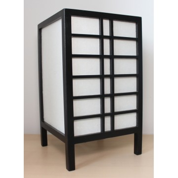 Den japanske rispapirlampe ses i øjeblikket blandt de største trends indenfor boligindretning. Japanske bordlamper giver et roligt og enkelt udtryk i hjemmet, klinikken, kontoret eller andre steder hvor du har brug for ro og harmoni. Den findes i dag i mange forskellige fortolkninger til ethvert miljø, hvor den ikke blot er funktionel men også dekorativ og moderne. Placer én stor eller en en lille rispapirlampe ved sofaarrangementet, hvor de giver en god fylde og det bløde lys har en fantastisk effekt på rummet. Den simple lampe giver ro og balance i indretningen, idet den samler rummet, og skaber en komplet enhed. Mål: 20 x 20 x 34 cm. Den har almindelig fatning til dansk lyspære. E 27 Max. 60 watt.