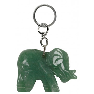 Aventurin elefant nøglering. Flot slebet elefant i aventurin krystal. Stenens betydning er en overflodssten der repræsenterer lethed, eventyr og kærlighed. Giver held i kærlighed og pengesager, idet den stimulerer følelsen af at intet er umuligt. God til meditation og visualisering.