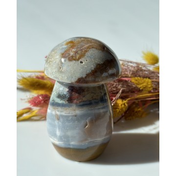 Ocean Jaspis – den du ser på billedet er den du får Nøgleord: Fred, berigende og forståelse Ocean Jasper åndelige egenskaber Ocean Jasper inspirerer os til at være en aktiv godhedskraft i verden. Den minder os om, at vi har en pligt overfor andre såvel som over for os selv, og at en af de klareste åndelige veje findes i tjeneste og gode gerninger. Ocean Jasper inviterer os til at tale med os og lade vores adfærd vise vores sande overbevisning. Hvis vi tror på kærlighed, så beder Ocean Jasper os om at handle med kærlighed. Hvis vi tror på retfærdighed, så beder Ocean Jasper os om at handle retfærdigt. Uanset hvad vi tror på, beder det os om at handle og bruge vores naturlige gaver til at løfte og inspirere. Ocean Jasper hjælper os med at flyde med livets rytmer og være tålmodige med os selv og andre, mens vi udvikler os. Det er et fantastisk værktøj til sjælshealing og udforskning af karmiske bånd. Det hjælper os til at lære af fortiden, både dette liv og tidligere liv, så vi kan opnå visdom og bevæge os fremad mod oplysning. Hvis vi søger efter vores åndelige vej, opmuntrer den os til at nyde eventyret i vores sjælssøgning og til at blive ved med at stille de gode spørgsmål og gøre de gode handlinger. Ocean Jaspis følelsesmæssige egenskaber. Ocean Jasper bringer en smuk energi af ro og pålidelighed. Den inspirerer til selvaccept og selvtillid. Den opmuntrer os også til at finde og pleje gode mennesker, vi kan ringe til for at få støtte, når det er nødvendigt. Ocean Jasper er især god til alle, der har med børn eller unge at gøre, og som skal være en tryg og klog voksen, de kan stole på. Det hjælper os til at tage frygt og bekymringer alvorligt i stedet for at være afvisende. Den tilskynder til sunde løsninger på problemer, store som små, og til at håndtere problemer med det samme i stedet for at udsætte dem i håbet om, at de bare forsvinder. Ocean Jasper kan også varmt anbefales, når vi har at gøre med vores eget indre barn, som måske har følelsesmæssige sår, som aldrig er blevet behandlet ordentligt. Ocean Jasper beder os om at give det indre barn den støtte og kærlighed, der er brug for, og at være den forælder, vores indre barn har brug for, så det kan føle sig trygt og heles. Uanset hvem vi har med at gøre, minder Ocean Jasper os om, at det ikke er nok kun at føle empati, vi skal også tage passende handlinger. Energier: Vi mennesker har altid været tiltrukket til kysterne pga. vandets rytmiske bølgegang. Vi indånder dens salte dufte, føler dens kraft og lægger vores byrder til side. Ocean jaspis har den samme ånd af fred og ro til at give slip, til at indånde og puste ud dybt og bevidst, tilpasse sig naturen og være fysisk og åndeligt til stede i ens omgivelser. Ocean jaspis giver slip på stress, fortvivlelse og uro, så krop og sind kan være fysisk og åndeligt til stede i nuet. Bringer lykke, glæde og alt godt i livet. Giver mulighed for at tiltrække alle positive berigende energier, ved at frigive indestængt vrede og fjerne følelsesmæssige blokeringer. Viser vej til skjulte evner, og viser at alt i denne verden kan lade sig gøre. Samtidig giver den åndelig visdom. Ocean Jaspis er en skøn sten for healere og andre til at plejde sig selv, og være mere empatisk over for andres følelsesmæssige og mentale behov, således de forbliver objektive i deres arbejde. Affirmation: "Jeg skaber glæde og nydelse for mig selv og min krop" Chakra: Alle Mål: 11,2 x 7 cm. Vægt: 753 g. Vores sten og krystaller er af højeste kvalitet, da alle bliver nøje udvalgt. Men alle er ikke ens, så der kan forekomme forskelle i udseende, størrelse og ujævnheder.