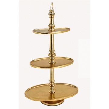 Den smukke opsats som er i forgyldt aluminium har 3 fade, som harmonere hinanden i størrelse. Du kan bruge den til at vise din ynglingsdekoration frem på en smuk og stilfuld måde. Opsatsen er også ideel til sten, krystaller, figurer eller andre hyggelige ting – ja kun fantasien sætter grænser. Materiale: Forgyldt aluminium. Størrelse: H: 75 cm. Fad str. 28×18 cm, 41×26 cm, 51×31 cm. Vægt 17 kg.