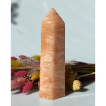 Orange Calcit Nøgleord: Effektivitet, glæde og selvværd Energier: Denne krystal styrker dit indre barn, glæde og sørger for, at du forbliver spontan i livet, hvilket er en vigtig faktor. Den giver dig følelsen af selvsikkerhed, overflod, kærlighed og samhørighed. Føler du dig i en periode lidt nede i et hul, så giver denne flotte krystal dig kræfter og fornyet energi samt følelsen af at være totalt ovenpå. Den giver et boost af selvtillid som gør dig i stand til at finde modet på ting i livet. Den åbner din bevidsthed om, at du og alle andre er en fantastisk del af hele universet. Den er en god lille hjælper til dig i kreative situationer, da den giver energi og et boost af nytænkning og inspiration. Den giver dig initiativ, effektivitet og liv i hele din krop. Den er en super ven i forhold til at støtte dig ved nye begyndelser, uanset om det handler om forhold, livssituationer, arbejde eller mål i helt nye verdensdele.Den mindsker din følelse af utryghed og mindre værd og så forløser den gammelt vrede og sorg. Chakra: Solarplexus. Numerologi: 2 og 7 Mål: H: 17 cm, B: 5,5 cm, D: 4,5 cm. Vægt: 650 g. Orange Calcit fra Madagascar (Den er mere laksefarvet) Vores sten og krystaller er af højeste kvalitet, da alle bliver nøje udvalgt. Men er ikke ens, så der kan forekomme forskelle i udseende, størrelse og ujævnheder.